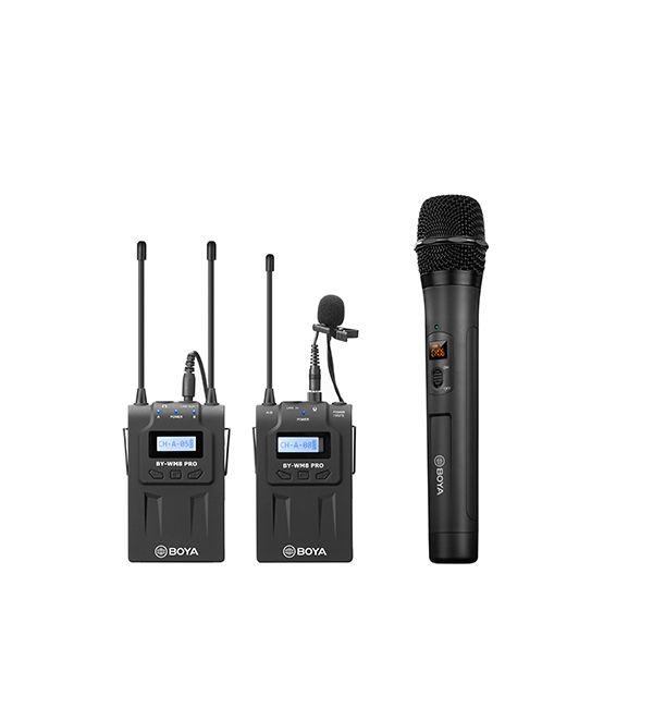 Enhance your video production with the BOYA BY-WM8 PRO-K4 UHF Dual-Channel Wireless Microphone System.