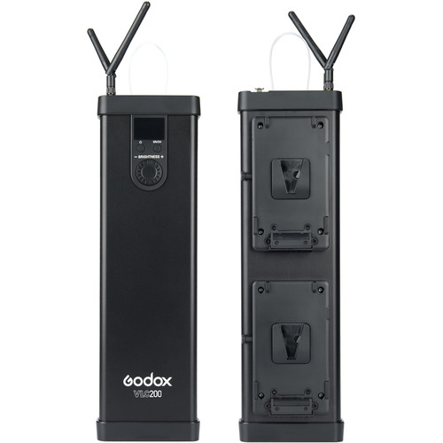 The controller box contains dual V-mount battery plates, and an LCD display with intuitive controls and command dial for making adjustments to the light body locally. Setting can also be adjusted wirelessly using the separately-available radio remote, or by using Bluetooth-enabled portable devices with the GodoxPhoto app, available as a free download for iOS and Android devices.