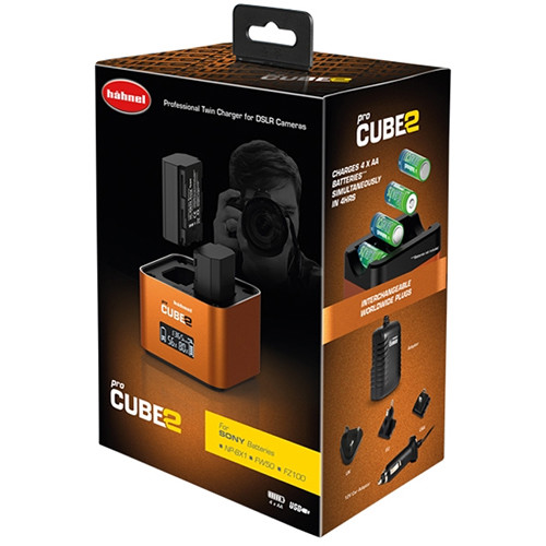 The Professional Charger PROCUBE2 for Select Sony Batteries from hahnel is a 2-bay charger that is compatible with the NP-BX1, NP-FW50, and NP-FZ100 batteries and can charge one or two lithium-ion batteries within 150 minutes simultaneously. An included charging plate, which sits atop the existing plate, charges four NiMH batteries as well.