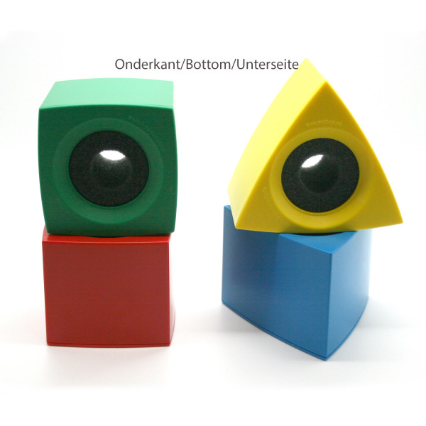 - Five white triangular mic flags