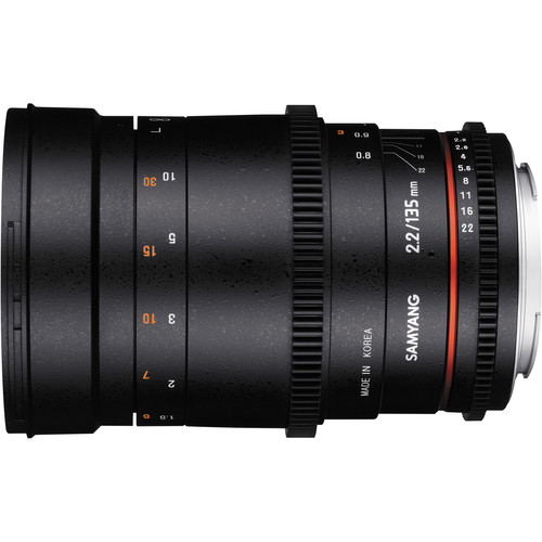 - Optimized for cinema and video shooting with geared aperture and focus rings, de-clicked aperture for smooth exposure transitions and side-facing aperture and distance markings. The 135mm T2.2 is part of the VDSLR II series of cine lenses, sharing characteristics and features that unify the series and make it easier for users to swap out lenses when shooting video. Each VDSLR II lens provides aligned focus and aperture rings so that readjustment of the follow focus is not necessary when switching lenses. Also each lens has been tested to match color and contrast for a consistent look and less potential post-processing. Finally, all lenses from this series print focus scales on both sides of the lens barrel for ease of use from each side of the camera.